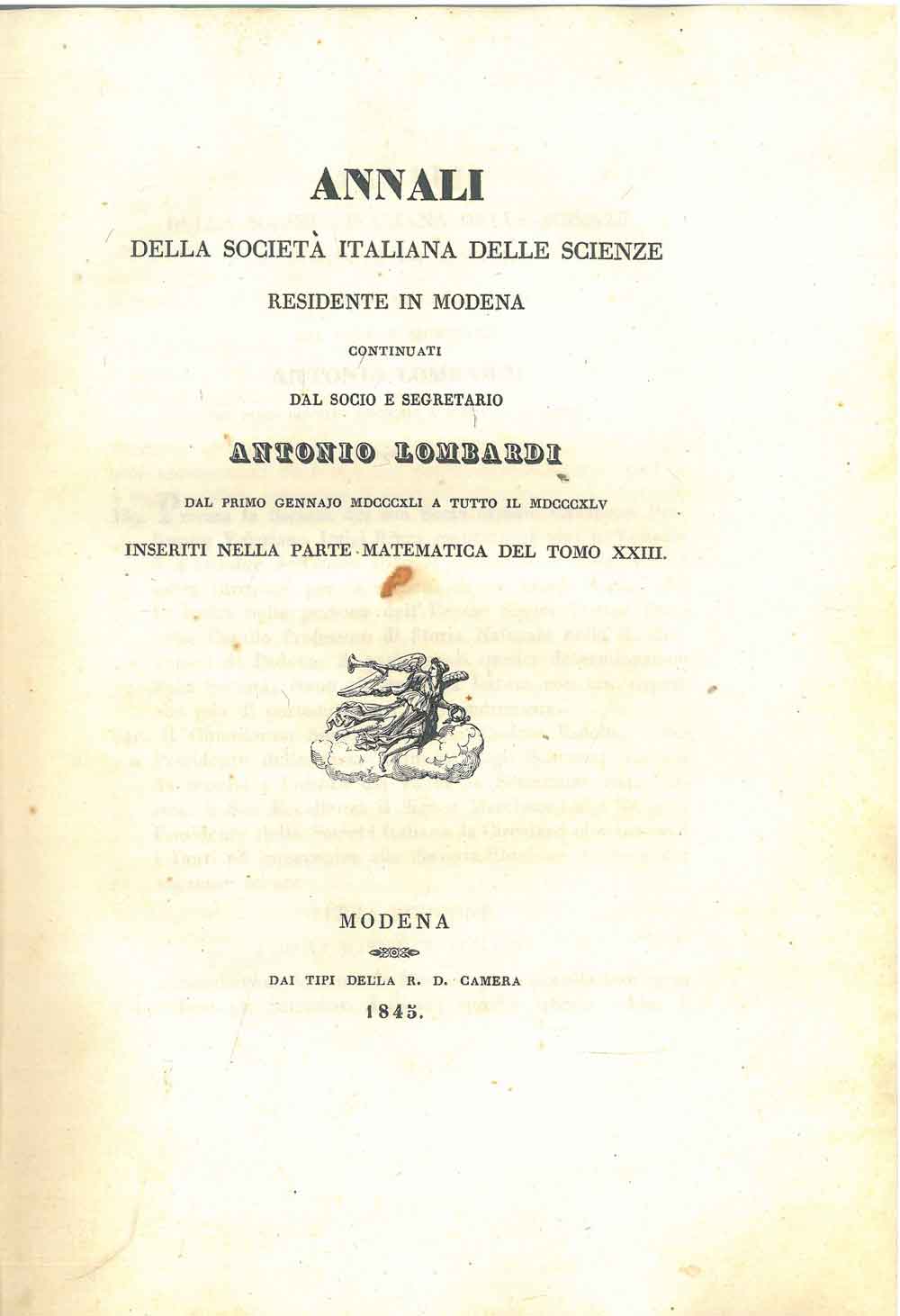 Annali delle società italiana delle scienze residente in Modena dal socio e segretario Antonio Lombardi dal primo gennaio 1841 a tutto il 1845