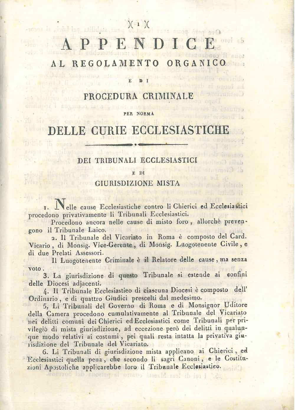 Appendice al regolamento organico e di procedura criminale per norma delle curie ecclesiastiche dei tribunali ecllesiastici e di giurisdizione mista