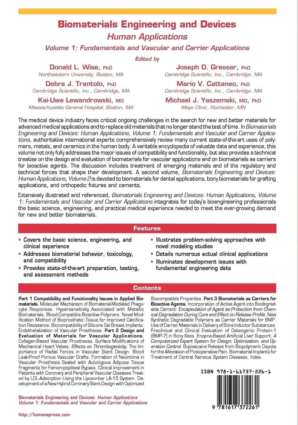 Biomaterials Engineering and Devices: Human Applications | Volume 1: Fundamentals and Vascular and Carrier Applications