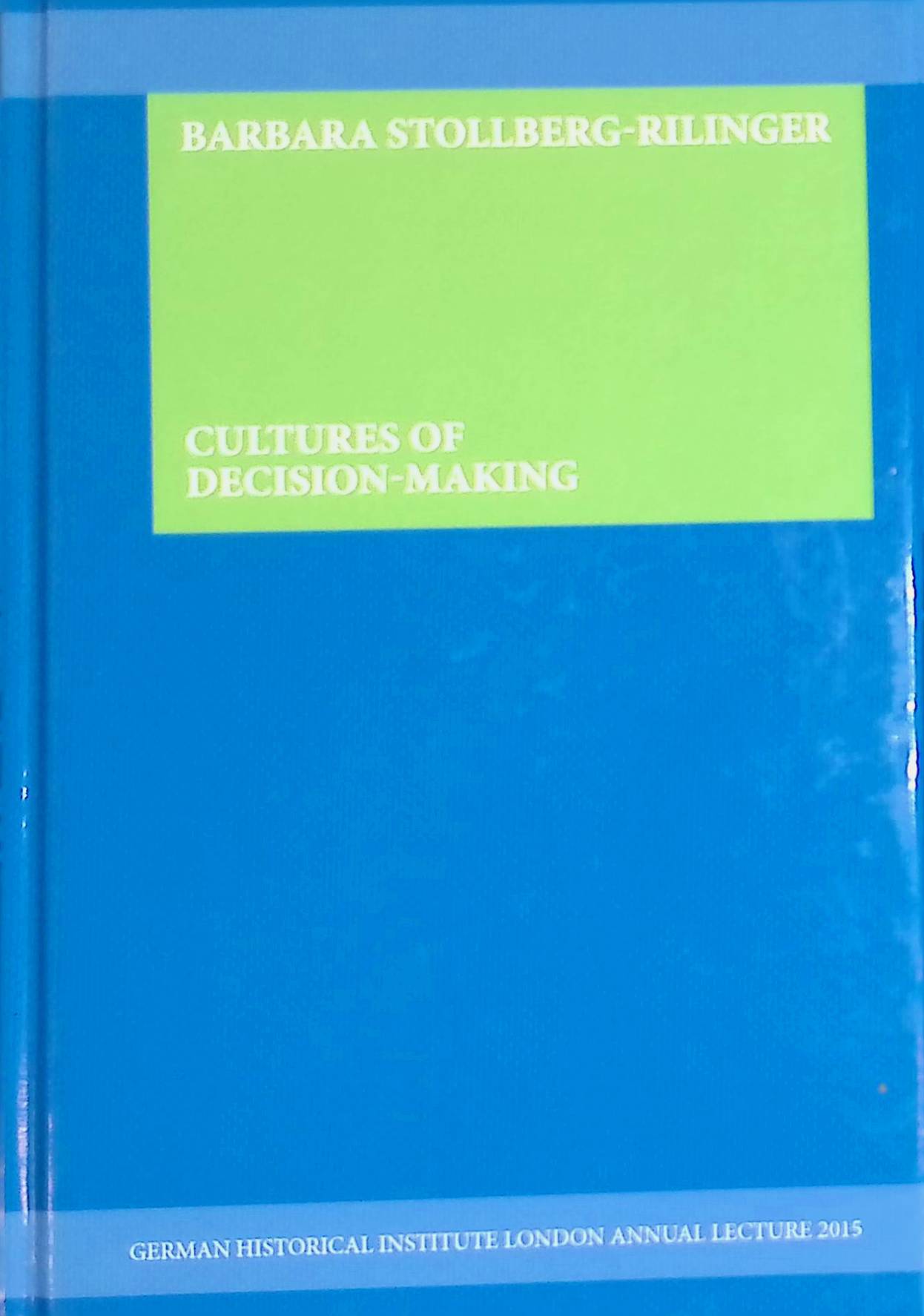 Cultures of Decision-Making German Historical Institute London, The 2015 Annual Lecture