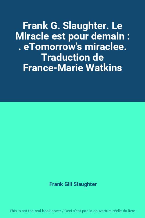 Frank G. Slaughter. Le Miracle est pour demain : . eTomorrow's miraclee. Traduction de France-Marie Watkins