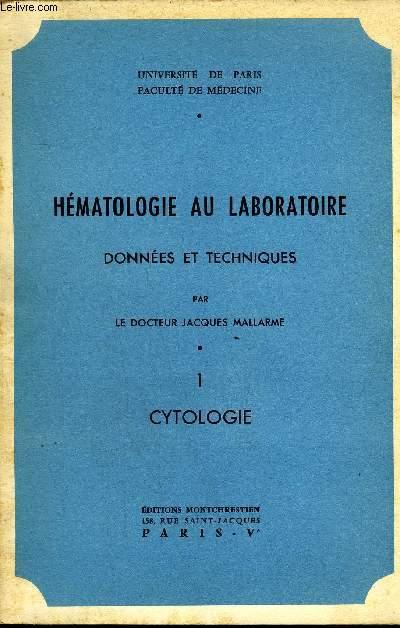 HEMATOLOGIE AU LABORATOIRE DONNEES ET TECHNIQUES - UNIVERSITE DE PARIS FACULTE DE MEDECINE - TOME 1 : CYTOLOGIE.