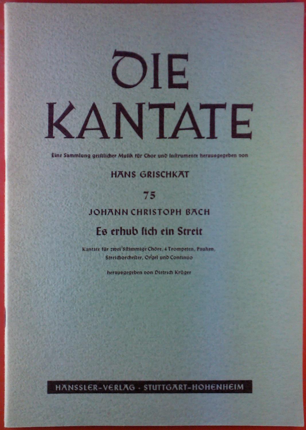 Die Kantate. Eine Sammlung geistlicher Musik für Chor und Instrumente. Heft 75: Johann Christoph Bach. Es erhub sich ein Streit. Kantate für zwei`stimmige Chöre, 4 Trompeten, Pauken, Streichorchester, Orgel und Continuo.