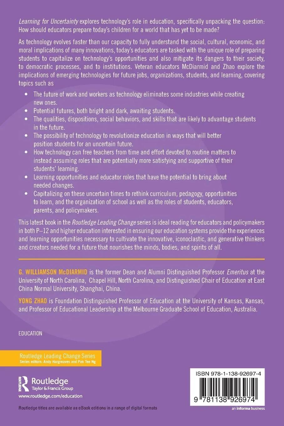 As technology evolves faster than our capacity to fully understand the social, cultural, economic, and moral implications of many innovations, today's educators are tasked with the unique role of preparing students to capitalize on technology's opportunities and also mitigate its dangers to their society, to democratic processes, and to institutions. Veteran educators McDiarmid and Zhao explore the implications of emerging technologies for future jobs, organizations, students, and learning, covering topics such as