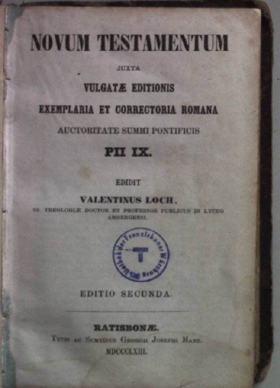 Novum Testamentum. Juxta Vulgatae Editionis Exemplaria et Correctoria Romana. Auctoritate Summi Pontificus PII IX.