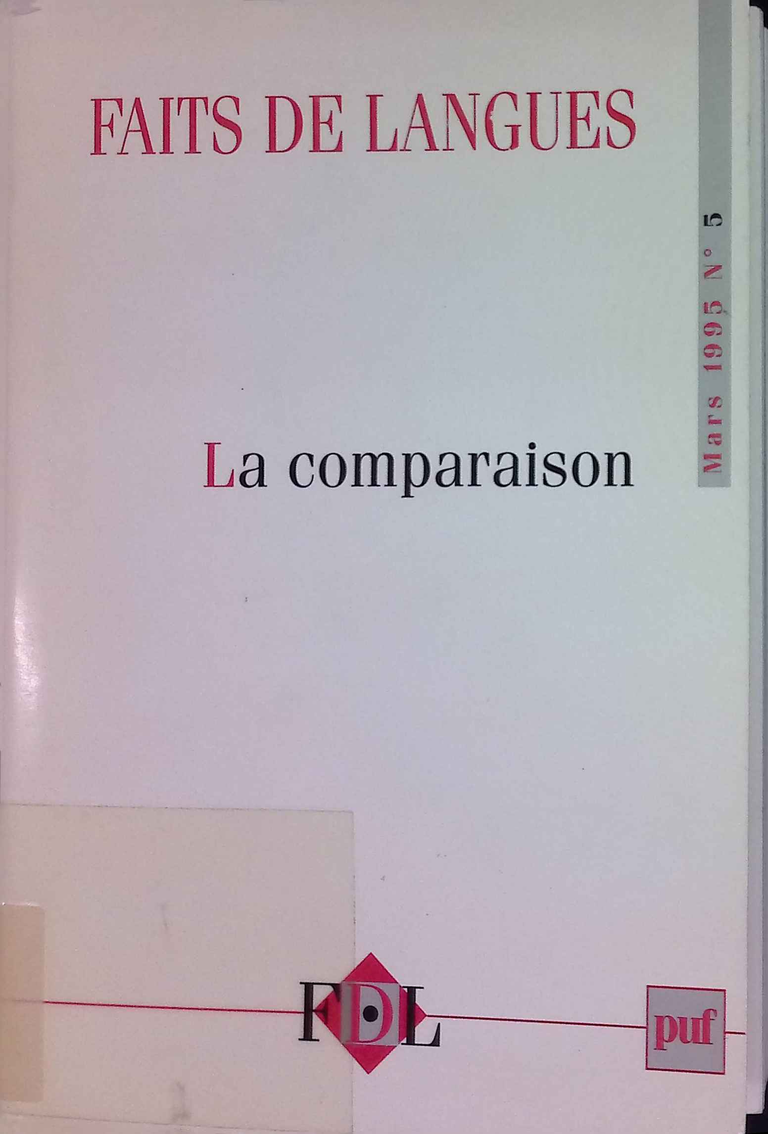 Pourquoi il n'y a que deux relations de comparaison -in: Faits de langues n.5 1995: La comparaison