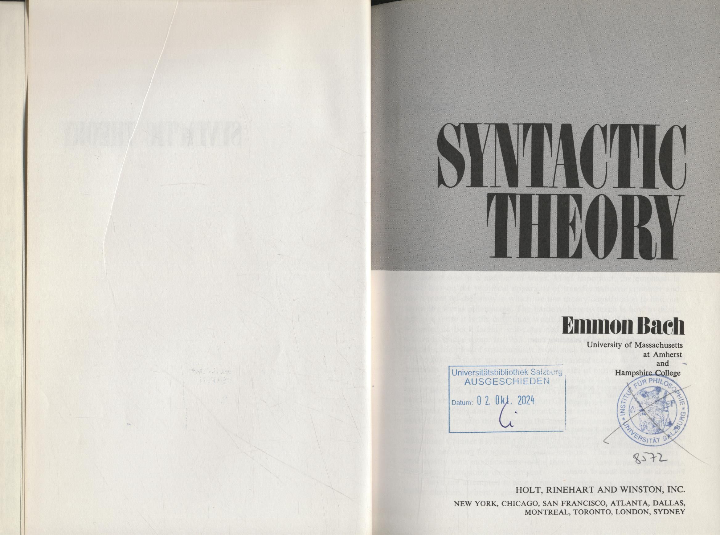 Verlag: Holt, Rinehart & Winston, 1974