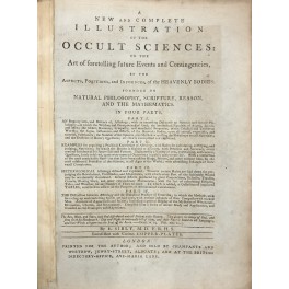 A new and complete illustration of the occult sciences: Or the Art of foretelling future events and contingencies, by the aspects, positions, and influences, of the heavenly bodies. Founded on natural philosophy, scripture, reason, and the mathematics. in Four Parts